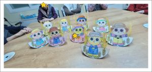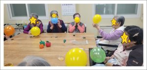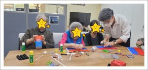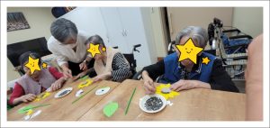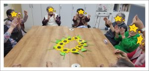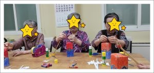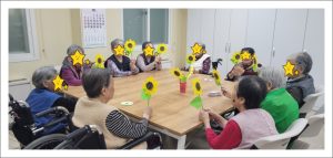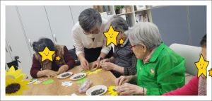 해바리기를 만들어 해바라기씨앗을 붙이시며 예전에 해바라기씨 많이 까 먹었다고 하시면서