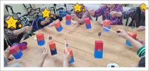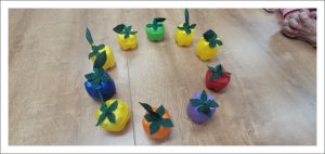 페트병 바닥에 풍선을 씌워서 여러가지 색깔의 파프리카를 만드시고는