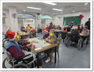 2024년 12월 뽕다방 clara2024년 12월 26일2024년 12월 26일공지 12월의 뽕다방은 성탄절이 함께 있는 달이라서 더욱 더 설레었습니다. 차와 스넥을 즐기시는 어르신들이 선호하는 노래를 부르시면서 산타모자를 쓰고 캐롤송을 함께 부르는 12월은 즐겁고도 매우 따듯했습니다.