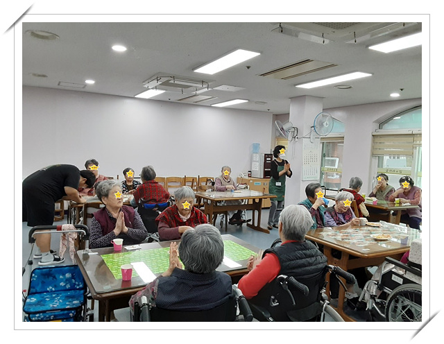 2024년 4월 뽕다방 clara2024년 4월 29일공지 입장하시면서 부터 뽕 다방에 오신것에 대한 기대감을 많이 보이셨고 즐거워 하는 모습을 보이셨으며 2층, 3층 어르신들께서 오랜만이라고 손도 잡아보고 반갑게 인사하시며 자리를 잡고 앉아 계셔서 차 주문을 받아 차와 과자, 음료수를 마시며 함께 노래도 부르고 즐거운 시간을 보냈다.