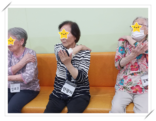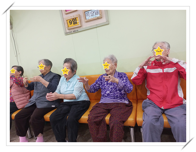 2024년 5월 치매예방 프로그램 clara2024년 6월 1일공지 *소근육과 집중력 및 운동신경발달에 도움이 되는 매직 요술 공 인지놀이를 펴고 접고 던져보기도 하시면서 즐겁게 참여하셨으며 대소근육 및 인지력 향상에 도움이 되는 대중가요를 활용한 건강 체조는 약 65%정도의 어르신께서 여러 가지 동작을 인지하시고 잘하셨으나 인지력과 신체기능이 많이 저하되신 어르신께서는 바라만 보셔서 한 분씩 해보시도록 지도하였더니 하트로 사랑의 마음을 전하기도 하시고 서로에게 예쁘다고 칭찬도 하시면서 즐겁게 참여하셨습니다.