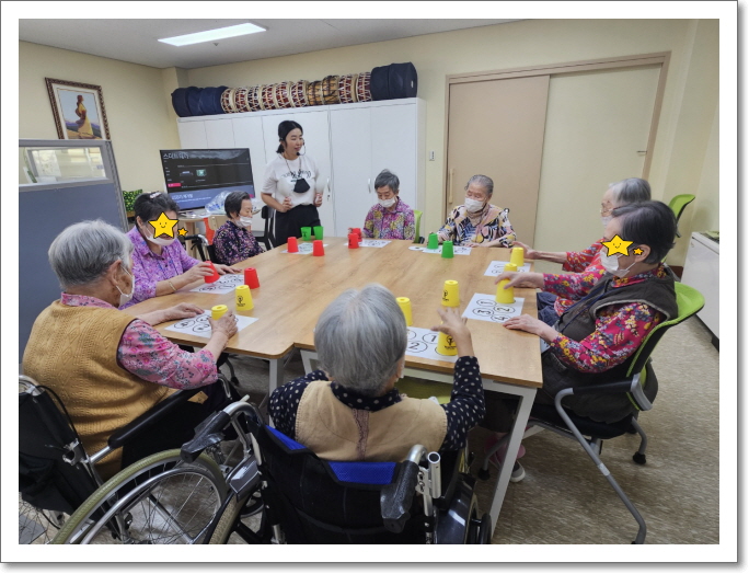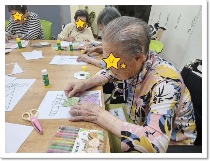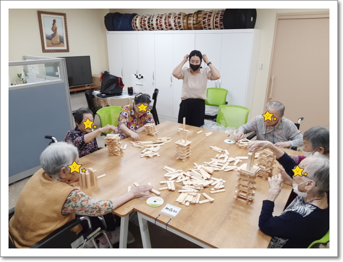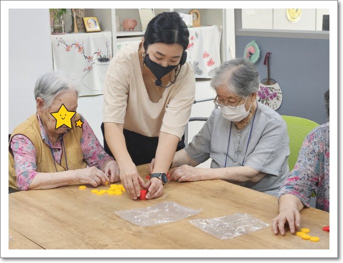 추석이 있는 달이어서 어르신들께서는 한복 디자인도 해보셨고 각종 교구들을 이용하여 기억력 향상에 좋은 놀이 치료를 하셨고 매우 행복하고 즐거워 하셨습니다.
