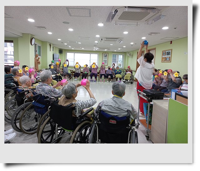 2024년 9월 웃음치료 clara2024년 10월 4일2024년 10월 4일공지 탱볼을 활용한 대소 근육운동 및 뇌인지 체조를 진행 대부분의 어르신께서 한 손으로 공을 잡고 팔운동 손바닥 치기 손목 돌리기 온몸 터치 동작을 흥겨운 리듬에 맞추어서 수행하셨습니다.