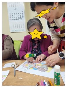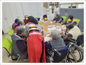계절과 절기에 맞는 활동을 하시며 어르신들의 추억을 소환하여 즐겁게 이야기 하시며 양손 작업을 하는 활동을 하셨습니다. 겨울의 한 가운데에서 겨울에 푸욱 빠져서 활동을 하셨는데 벌써 낮에는 햇살이 따스하여 봄의 향기가 느껴진다고 하셨습니다. 설을 맞이하여 떡국 이야기, 정월대보름에는 오곡밥과 쥐불놀이. 가마솥에 고구마 쪄 먹고 알밤 구워먹던 추억. 겨울의 별미 붕어빵을 가슴에 품고 오셨던 아버지 생각을 하시며 만들었던 붕어빵… 이제 서서히 향기로운 봄을 맞이할 준비를 하는 우리 어르신들입니다.