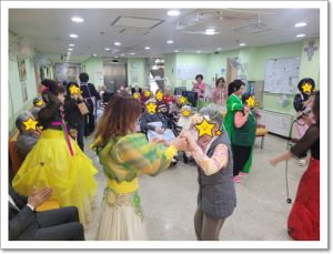 4월생신을 맞아하신 어르신은 김*순, 양*순, 임*수, 이*순 어르신으로 총 4분의 어르신으로 단장하고 행사장에 나오셨습니다. 한 분 한 분 어르신들을 소개시켜 드리며 머리에 화환을 씌어 드리고 떡 케익에 촛불을 켜고 축하해 드렸습니다. 케잌의 촛불을 끄시면서 어르신들 모두 자녀들의 건강과 행복을 기원하셨고 곧 라르고 공연단의 공연이 있어 어르신들이 민요, 밸리댄스 공연과 섹스폰연주등 다양한 공연을 관람 하시며 모두 즐거운 시간을 가지셨습니다.