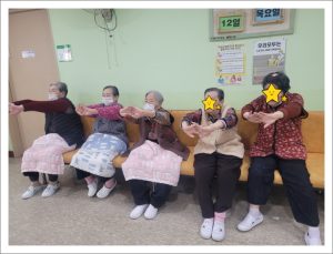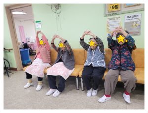 2026년 2월 실버체조 clara2026년 2월 27일2026년 2월 27일공지 추운 겨울 동안에 우리 어르신들께서는 더욱 신경써서 체조를 하십니다. 몸이 긴장하지않도록 스트레칭을 충분히 한 후 상체, 하체 근력운동을 즐겁게 하십니다. 실버체조는 편마비가 있으시거나 몸이 좀 불편하신 어르신들께서도 충분히 따라 하실 수 있는 동작으로 구성하여 재미있게 체조를 하시는데 그래도 힘이 들긴 힘이 든다고 하신답니다. 숨쉬기 운동으로 마무리를 하며 호흡조절을 하시고는 뿌듯하신 지 빙그레 웃으시며 마무리를 하시곤 하신답니다.