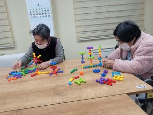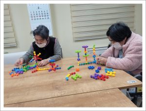 2026년 2월 교구놀이 clara2026년 2월 27일2026년 2월 27일공지 봄을 부르는 2월입니다. 아직은 찬기운이 많지만 건강하고 즐겁게 교구놀이 작업을 하셨습니다. 건물들을 세우고 놀이동산도 뚝딱 만들었답니다. 좀 이른 감이 있지만 개나리 넝쿨과 꽃신을 만들며 봄이 어서 오라고 재촉해 보았습니다. 우리 어르신들의 마음은 열일곱 봄처녀입니다.